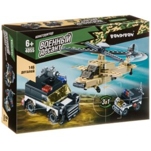 Конструктор Bondibon, Военный Десант, Вертолет, Машина, 146 дет., BOX